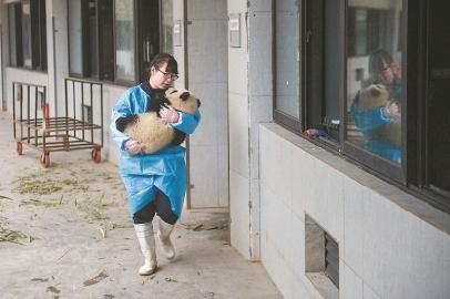 每天,段东琼和同事们不仅要给大熊猫准备食物,还要“放猫”(放进大熊猫运动场)、“钓猫”(训练大熊猫宝宝的肢体行动能力)、“收猫”(晚上将大熊猫收回舍中),以及洗澡、收尿、称重、体检、打扫圈舍……随时严格监控大熊猫的身体状态。当它们身体不舒服时,更要通宵陪伴。