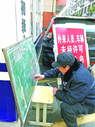 “想不到我们的门卫师傅还有这么一手,真是深藏不露啊。”七(2)班学生邵思喆经过校门口时,忍不住和同学停下来读起了黑板报。“张师傅的字很漂亮,内容也很鼓舞人心。”