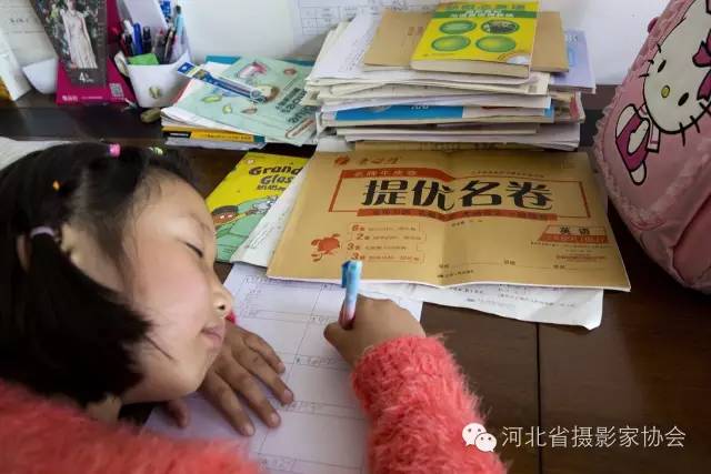 6. 一位三年级的小朋友下午放学后趴在妈妈的办公桌上写作业,写着写着就睡着了。
