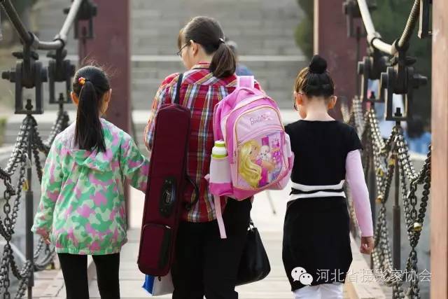 9. 妈妈抓紧孩子两个补习班之间的“空隙”,带孩子去公园“透透气儿”。怕孩子累着,她把孩子的所有学具都背在了自己的身上,妈妈头上的白发若隐若现。