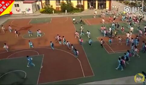 视频中一开始,是一群小学生早晨入校时的场景,操场上,00后小学生们背着书包走向教室,步伐轻快矫健,随着人流的增加,有的学生由走升级为跑,孩子们时不时发出清脆的声音,指导老师提醒注意安全,校园里充满了昂扬的稚气。