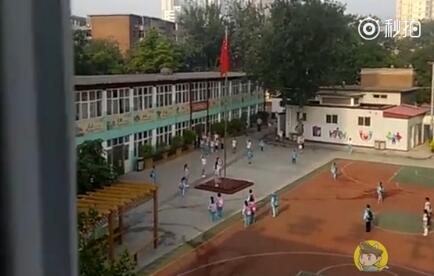就在视频30秒处,突然操场上响起了国歌,这时候,所有的小学生全部自发的停下了脚步,所有人的目光齐刷刷的望向操场升旗处,这些整齐划一的举动全部在3秒内完成。随着升旗仪式的开始,小学生们笔直的站立,向缓缓升起的国旗行注目礼,直到国歌奏完,整个过程保持了将近50秒。待升旗仪式结束,小学生们又三五成群的朝教室走去。