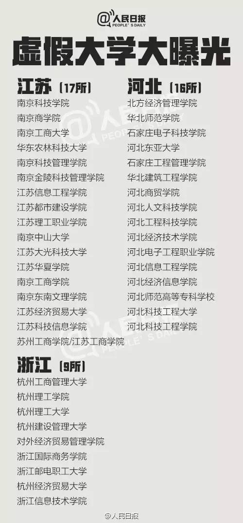 截至目前,已有十多个省份高考分数线出炉,很快就要填志愿,一些“虚假高校”也要开始作祟了。上大学网从2013年到2016年共曝光5批虚假大学名单,一些“野鸡学校”被曝光多次仍换个域名继续存在。381所最全名单↓↓