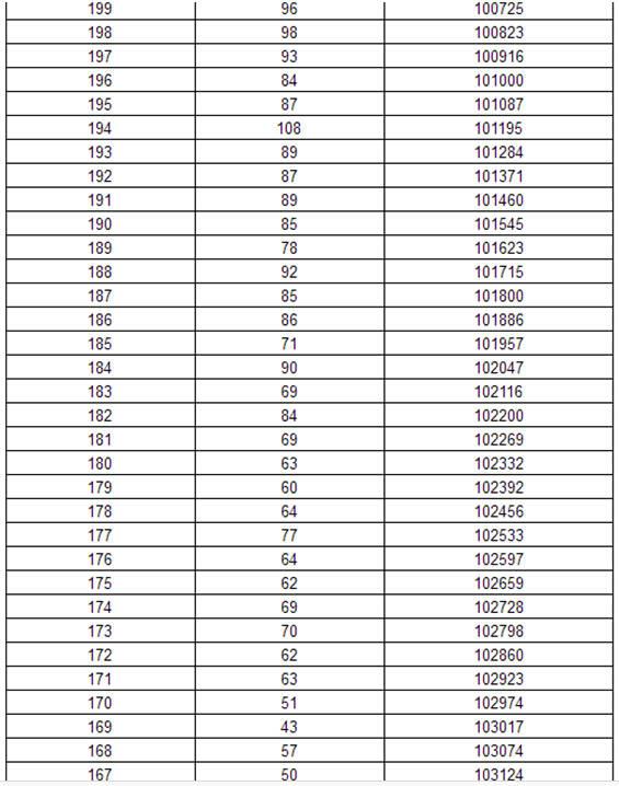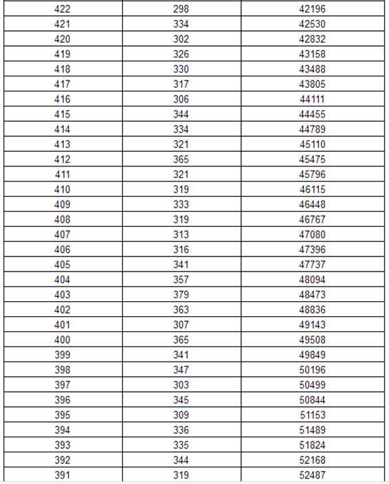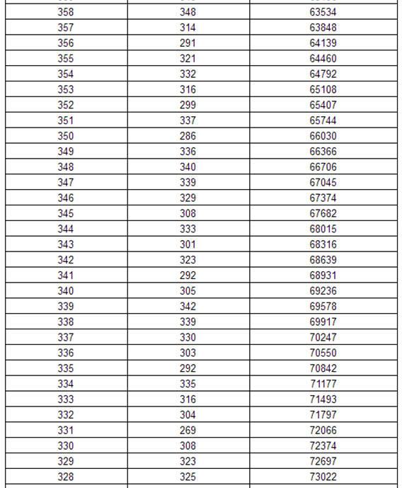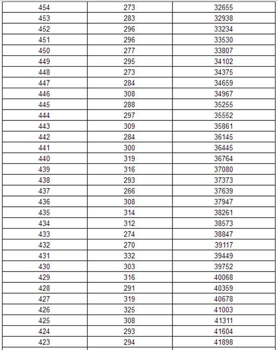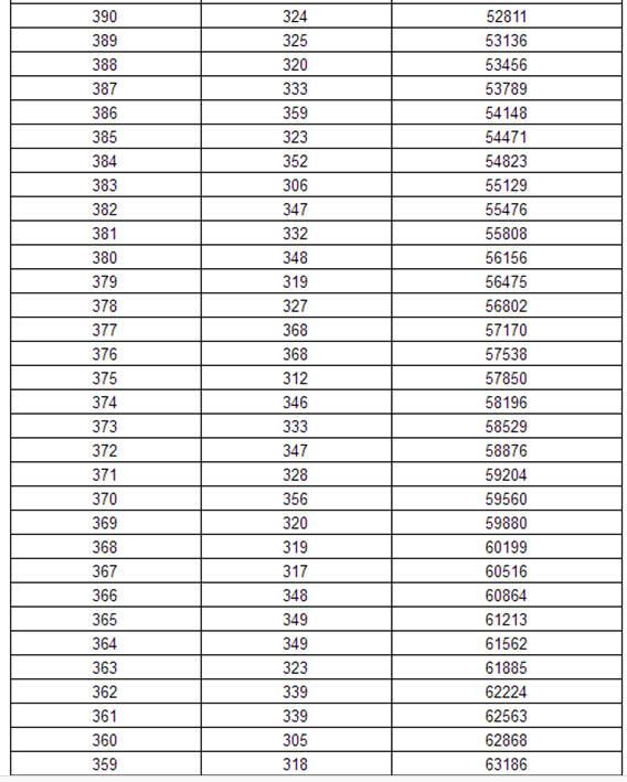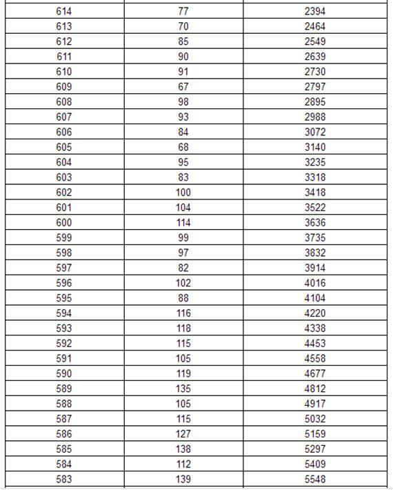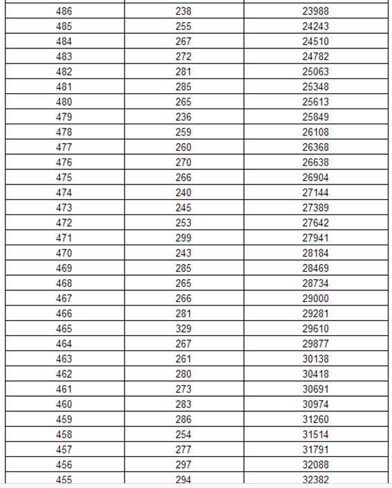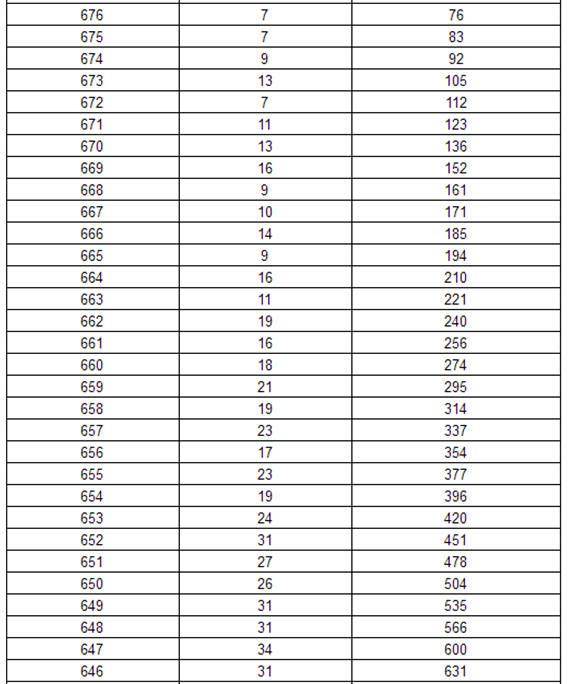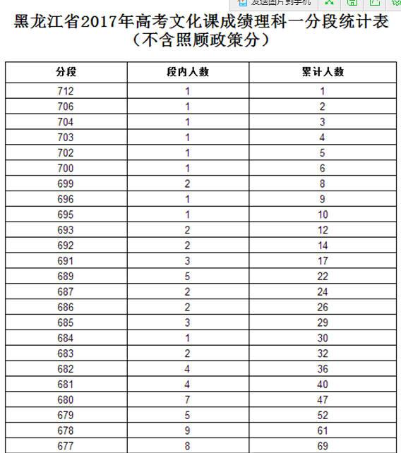 2017年黑龙江高考理科分数段统计表