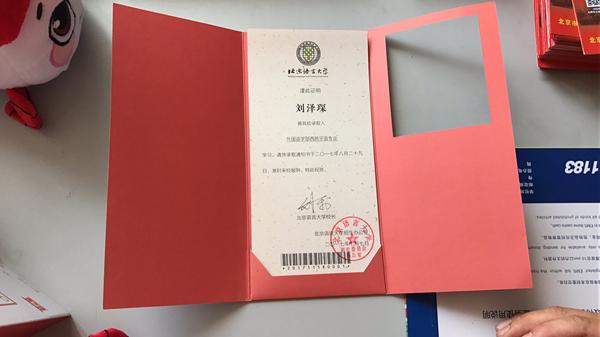 北京市第一封录取通知书