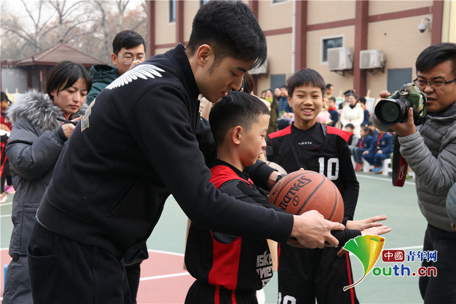 篮球运动员为西安小学学生指导。代红玉供图