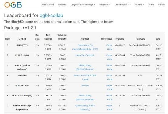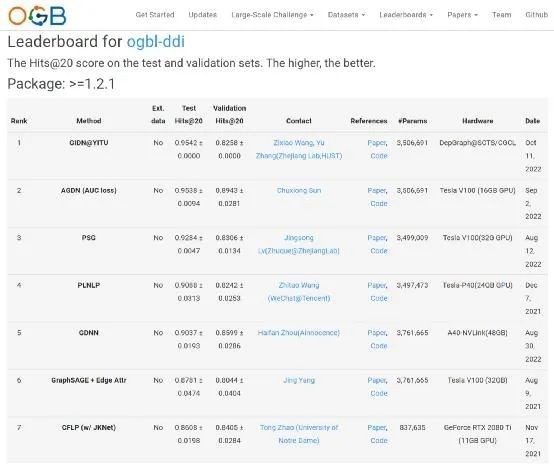 据了解,10月16日,学校计算机学院张宇副教授主导的图计算团队自主研发的新型图学习模型GIDN,在2022年国际开放图基准数据集OGB (Open Graph Benchmark) 挑战赛的链接属性预测赛道中——