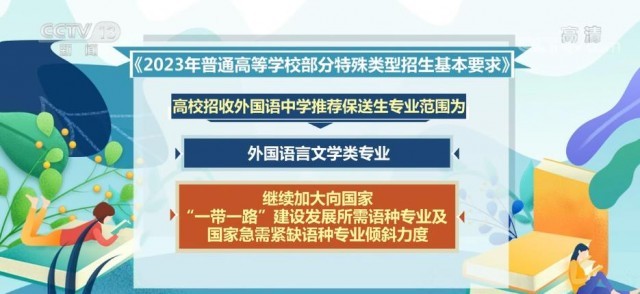 高校招收外国语中学推荐保送生专业范围为外国语言文学类专业,继续加大向国家“一带一路”建设发展所需语种专业及国家急需紧缺语种专业倾斜力度。