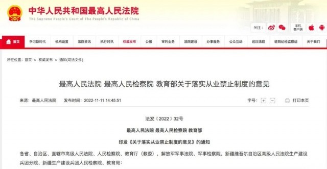近日,最高人民法院会同最高人民检察院、教育部发布《关于落实从业禁止制度的意见》(以下简称《意见》),严格执行犯罪人员从业禁止制度,净化校园环境,切实保护未成年人。
