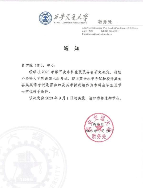 ¡¡¡¡9ÔÂ21ÈÕ£¬ÉÂÎ÷Î÷°²¡£Íø´«@Î÷°²½»Í¨´óѧ ½ÌÎñ´¦·¢²¼Í¨Öª£º¾Ñ§Ð£2023ÄêµÚÎå´Î±¾¿ÆÉúÔºÔºÎñ»áÑо¿¾ö¶¨£¬Ñ§Ð£²»ÔÙ½«´óѧӢÓï#ËÄÁù¼¶#¿¼ÊÔ¡¢Ð£ÄÚÓ¢Óïˮƽ¿¼ÊÔºÍУÍâÆäËû¸÷ÀàÓ¢ÓÊÔÊÇ·ñ²Î¼Ó¼°Æä¿¼ÊԳɼ¨×÷Ϊ±¾¿ÆÉú±ÏÒµ¼°Ñ§Ê¿Ñ§Î»ÊÚÓèÌõ¼þ¡£Ëæºó£¬Î÷°²½»Í¨´óѧ½ÌÎñ´¦¹¤×÷ÈËÔ±±íʾ£¬ÏûÏ¢Êôʵ£¬ÕâÊÇͨ¹ýÉÌÒé¾ö¶¨µÄ£¬ÆäËûѧУҲÓУ¬²¢²»ÊÇÒ»¸öÆæ¹ÖµÄ¾ö¶¨¡£