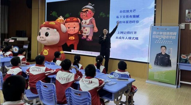 “猪猪侠”人偶走进课堂宣传反诈。