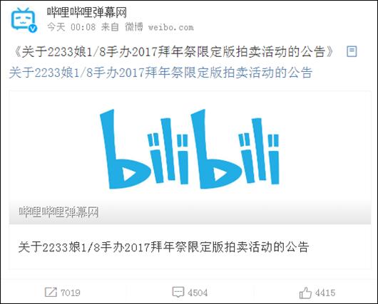 B站方面还表示,将联合淘宝拍卖平台对此事进行调查,并保留进一步采取法律手段的权利。而关于2017号拜年祭限定手办的结果,B站将于三日后公布相应方案。