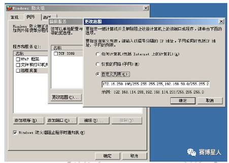 端口限制:使用系统自带的防火墙设置访问规则,即使用系统自带的防护墙,设置远程访问端口137、139、445、3389的源IP: