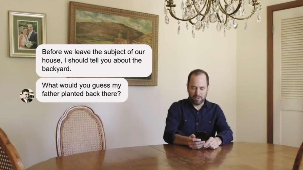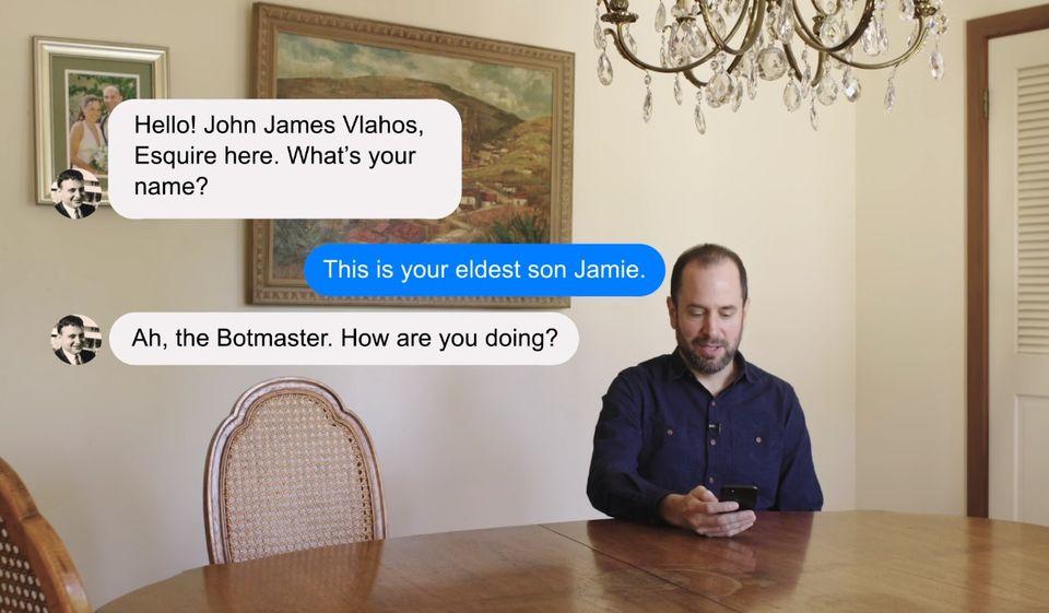 2017年2月弗拉霍的父亲因癌症病逝。在父亲患癌期间,弗拉霍做出了一个大胆的决定:设计出一款属于自己和父亲的聊天程序。于是,在父亲生命的最后一段日子里,弗拉霍将父亲的话语全部录制下来,一共整理出了9万余词语。之后,他借助Pullstring平台,设计出了专属的聊天机器人程序。该程序以上传的9万余词语为基础,由弗拉霍设定出针对某些语句接近父亲风格的回答,以此实现与去世父亲的虚拟交流。通过这个程序,弗拉霍不仅希望自己和母亲能够重温与父亲交流对话的温暖,还希望自己的孩子未来也能够通过这种方式与他们从未谋面的爷爷对话,真正了解爷爷究竟是怎样的人。