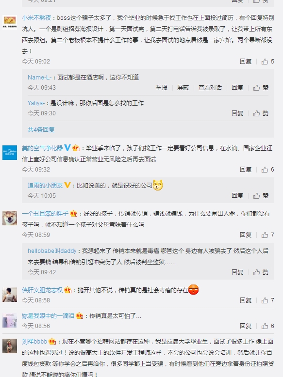 “传销与诈骗是这个社会巨大的毒瘤。用户和平台都深受其害。BOSS直聘将积极配合有关部门和家属,找出真相,让坏人受应有的制裁。作为一个有影响力的平台,我们愿与一切正义力量一道,为铲除传销和诈骗持续做出努力。我们相信和尊重法律,在一切水落石出之际,依据法律应当承担的一切责任,我们都愿意彻底承担。”BOSS直聘CEO赵鹏也在对事件进行了最新的回复。