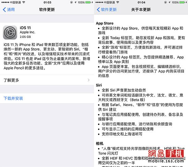 2017年9月20日凌晨一点,苹果官方准点向苹果用户推送iOS11正式版更新固件,此次iOS 11固件大小约为2.05GB左右。