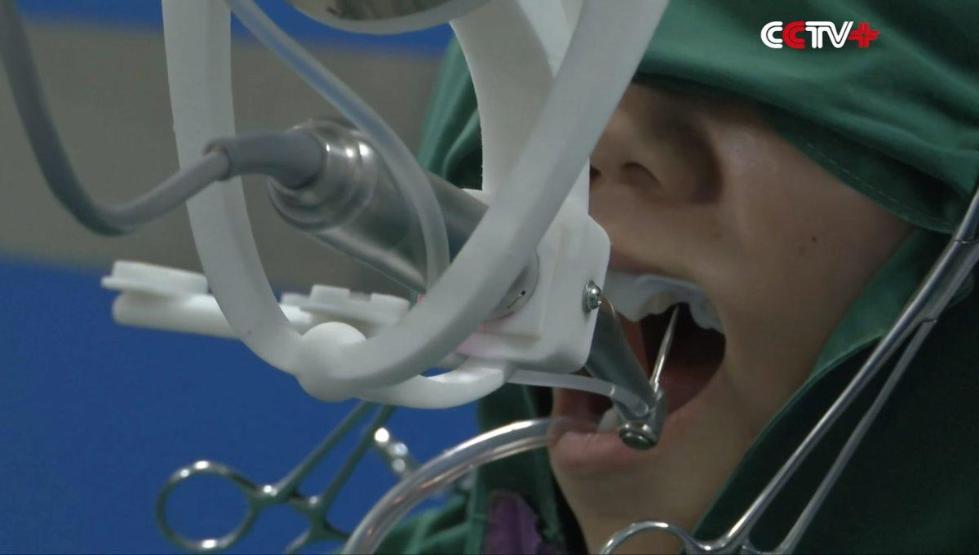 牙齿移植采用3D打印技术,误差控制在0.2~0.3mm,这正符合了这类手术的误差范围。患者会先做一个CT扫描,机器人被预先设计好了程序,他们会根据具体的指数来执行手术,包括植入牙齿的角度和深度。经过测试后,一名西安(陕西省会)女性在当地一位麻醉师的步骤操控下,用该技术进行了治疗。机器人可以根据患者自身手术中微小的移动做出调整。