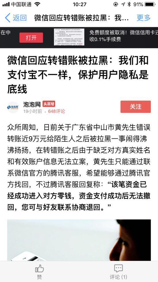 这件事情引起社会广泛讨论。之前出现转错账无法要回的案例比较多,腾讯公关的相关人员也强调,保护用户隐私是互联网公司的底线。他们要对所有用户负责,只要司法机关要求微信官方协助,他们肯定义不容辞,但如果是个人需要,不能突破底线。