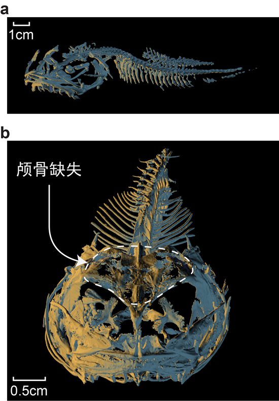 “高压环境对普通的骨骼也是致命的。”王堃说,超深渊狮子鱼中一个与骨骼钙化相关的基因——骨钙蛋白被截短了,而骨钙蛋白调控骨骼钙化和发育,“这可能使得它的骨骼变得非常薄,而且具有弯曲能力,头骨变的不再完整。”