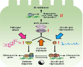解析昆虫激素介导小菜蛾Bt抗性机制示意图。中国农科院供图