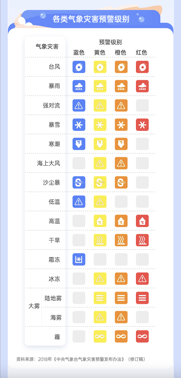 气象灾害预警14类 4级别