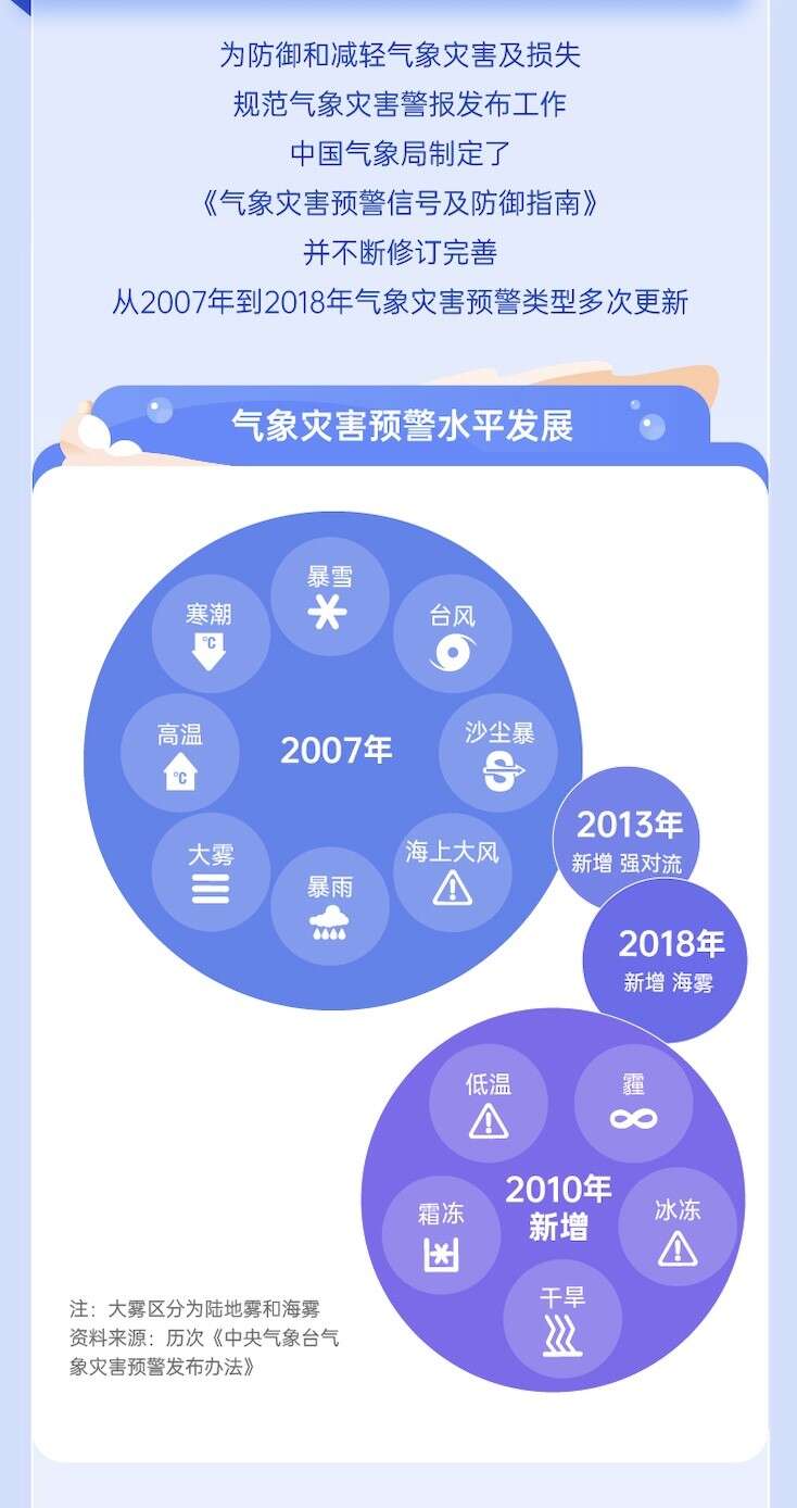 2013年8月,新增了强对流预警发布办法。至此气象灾害预警增14类。