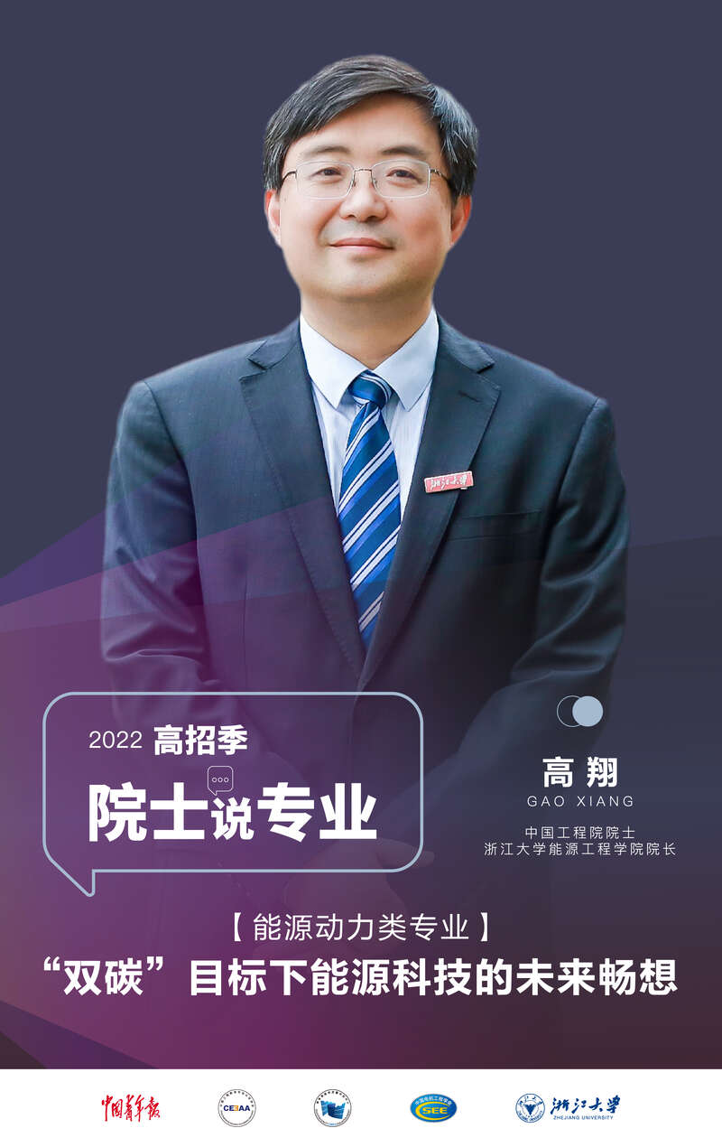 “双碳”目标下,研发适合中国国情的能源清洁利用新技术,助力国家能源环保事业高质量发展,是摆在中国能源人面前的一项重大使命。中国青年报社、中国工程教育专业认证协会、教育部教育质量评估中心等单位联合打造的《院士说专业》栏目,第8期邀请中国工程院院士、浙江大学能源工程学院院长高翔,向同学们介绍能源动力类专业,分享“双碳”目标下能源科技的未来畅想。