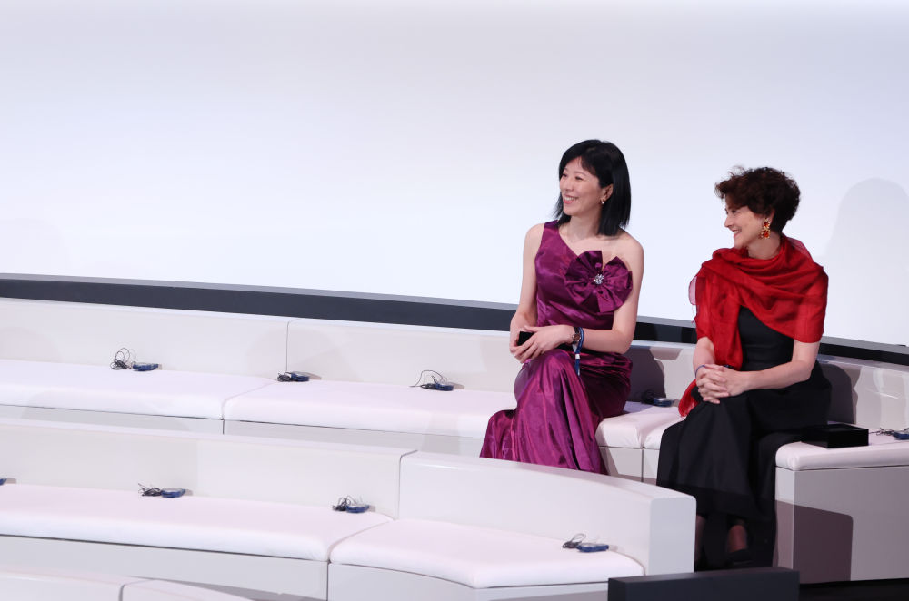 ↑胡海岚(左)出席颁奖典礼。