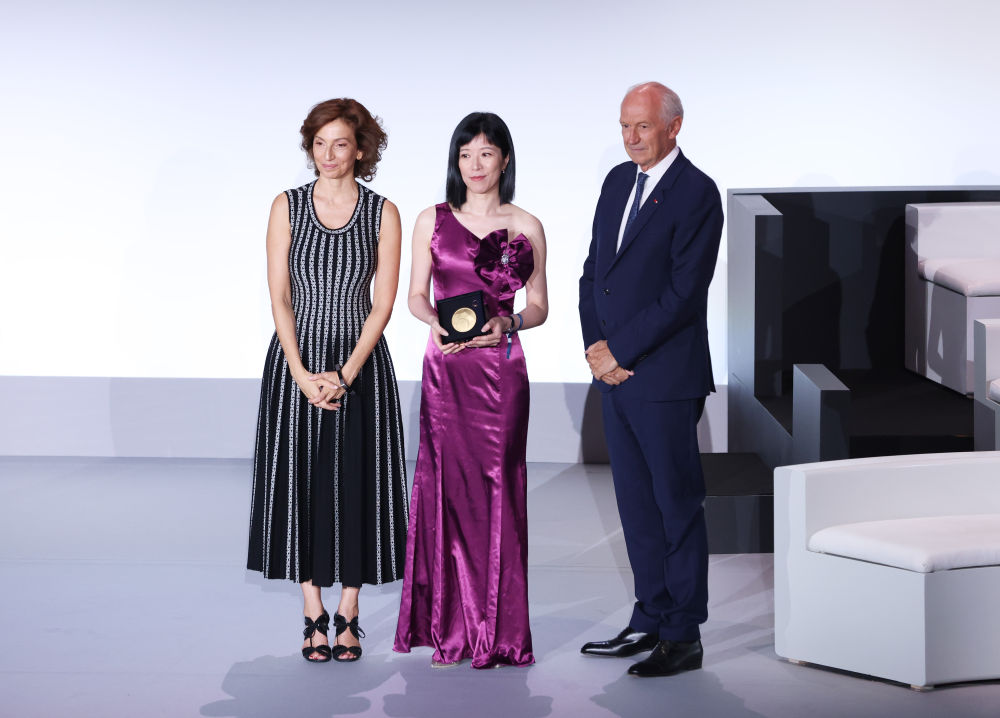 ↑胡海岚(中)获颁“世界杰出女科学家奖”。