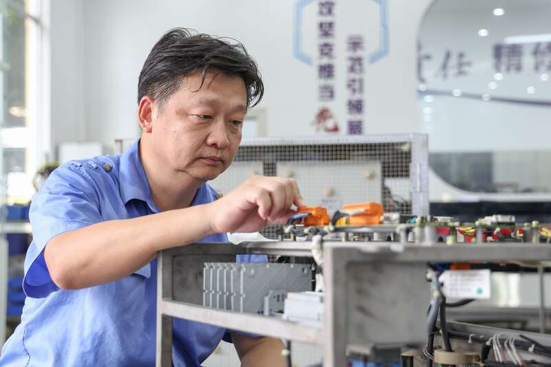 当时,车间作业人员还没有掌握电路板的修理技术,一旦设备发生故障,只能请厂家派人前来维修,每年的维修费用高达300多万元。关键时刻,陈岗主动请缨,决定尝试自己进行修复。经过上千次试验,最终实现各类电路板的自主维修,大幅降低了维修成本。2015年,由陈岗主导研发的列车DC600V逆变器过分相模拟试验装置获得国家专利。