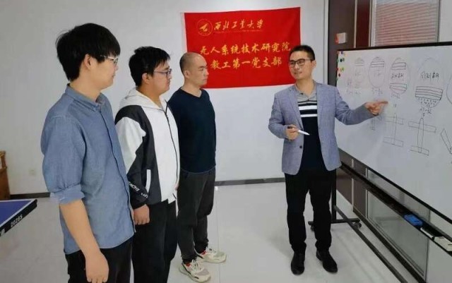 昌敏老师指导学生讨论技术方案。西北工业大学供图