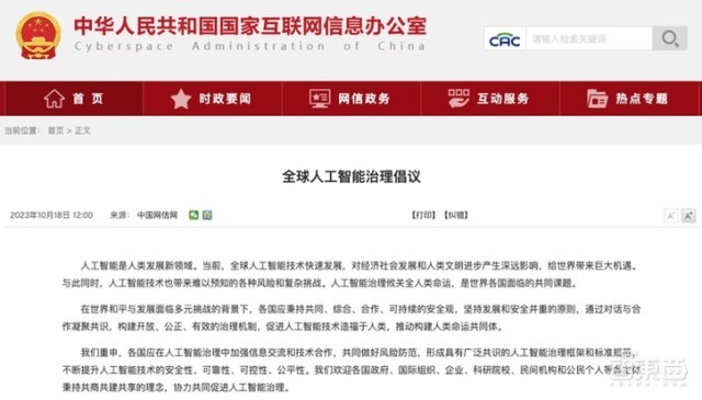 实际上,在OpenAI“宫斗剧”上演之前,中国10月18日就提出了《全球人工智能治理倡议》。这是中国在促进人工智能安全发展和应用方面作出的庄严承诺,为人工智能发展和治理问题提出了建设性的解决思路,也为相关各国讨论和规则制定提供了蓝本。