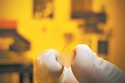 带有超薄磷化铌线路图案的芯片。图片来源:美国斯坦福大学
