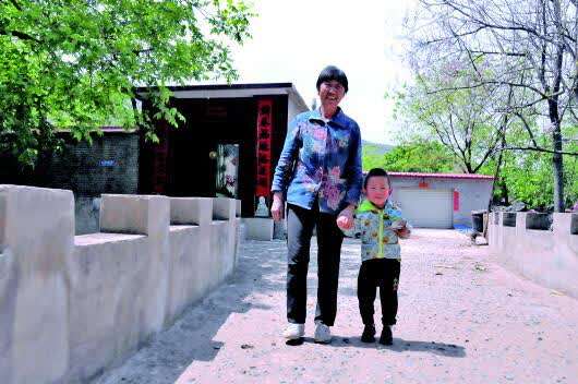 晏爱维和孙子站在石桥上。本报记者王京雪摄