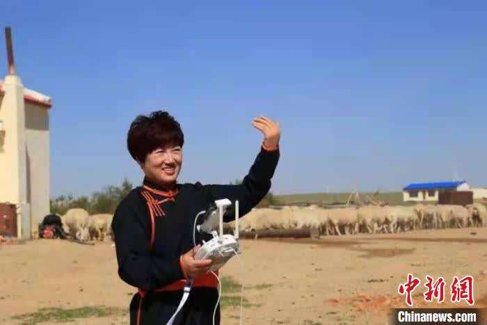 图为斯琴格日乐正在操作无人机。 受访者供图