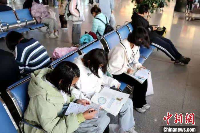 走进候车室,是一排排看书的学生,有的拿着课本温习;有的在充电吧台上写作业,整个车站被书香气息包围。