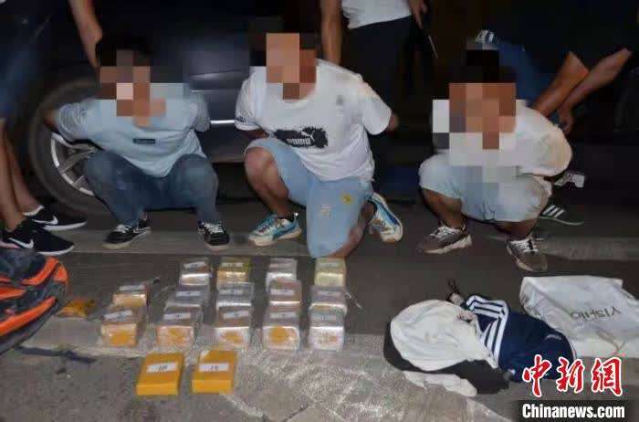 图为抓获的犯罪嫌疑人与缴获的毒品。 瑞丽边检站供图