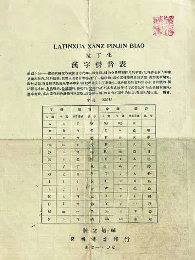 陈望道编《汉字拼音表》 图片由复旦大学档案馆提供