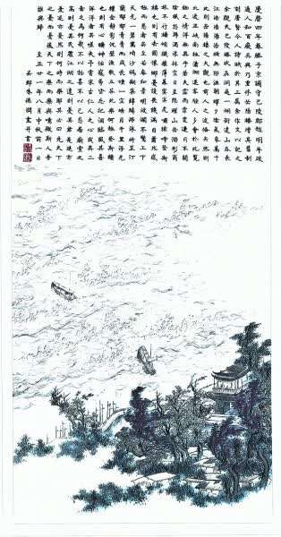 每创作一幅作品都是一次与原画作者的跨时空对话,在顾玉纯的作品中,每一处景观都被一针一针定格,每一幅作品都焕发了新的生命。近年来,他相继完成了《八大山人系列》、《郑板桥系列》、长卷《落霞孤鹜图》、《兰亭图》等中国书画宣纸刺绣精品,逼真再现了原作酣畅淋漓的水墨效果。