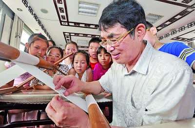 顾玉纯走进校园,向孩子们演示宣纸刺绣技艺。陈文萍摄/光明图片