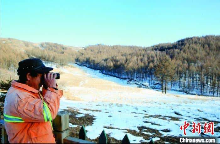 保护区的工作和生活环境艰苦,从每年10月到次年5月是长达半年的封山期。尤其是冬天,山溪结成的冰阻断了70%的上山路,戎喜民巡护的部分路段只能绕行山势陡峭的密林。“现在是山火高发期,每天上午、下午都要巡山一次。”戎喜民不时举起望远镜,向四下瞭望着。沿途的10多个制高点都是他驻足瞭望的地方。