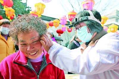 为迎接3月3日全国爱耳日,2月28日,浙江省湖州市德清县乾元镇残联开展“惠民义诊迎爱耳日”活动,组织医生给居民普及听力健康科学知识、检测听力,提高居民爱耳护耳意识。图为医生在为居民检测听力。倪立芳摄/光明图片