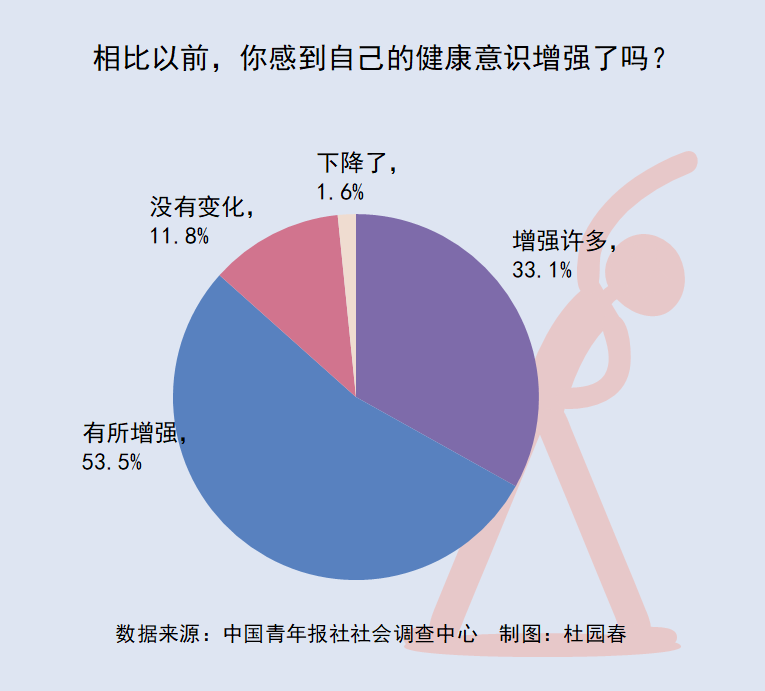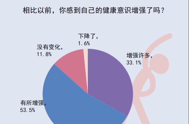 新冠疫情让人们的健康观念产生改变,很多人也更加重视健康。日前,中国青年报社社会调查中心联合问卷网(wenjuan.com),对2008名受访者进行的一项调查显示,86.6%的受访者感到自己的健康意识增强了。