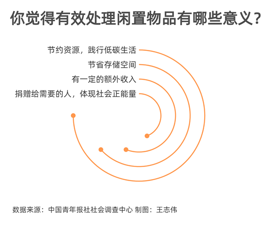 调查显示,对于处理闲置物品,61.3%的受访者觉得能节约资源,践行低碳生活。