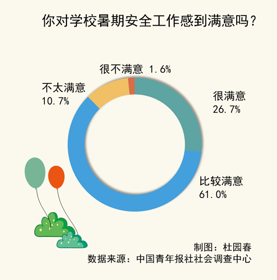 上周,中国青年报社社会调查中心联合问卷网(wenjuan.com),对2013名中小学生家长进行的一项调查显示,65.8%的受访家长表示老师在假期利用微信群、校讯通不间断进行安全警示。87.7%的受访家长对学校的暑期安全工作感到满意。
