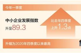 本报北京4月9日电 (记者王政)中国中小企业协会9日发布最新数据显示,今年一季度我国中小企业发展指数为89.3,比去年四季度上升1.3点,升幅为2020年四季度以来最高。