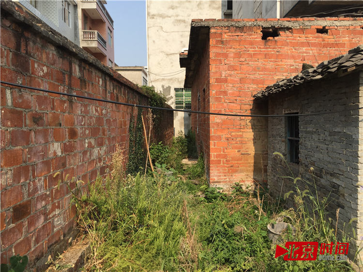 近日,“北京时间”(微信号:Btimedc)走访案发现场时,这个茅厕已经重新上了一把新锁,新旧两把锁共同锁住木门。茅厕外,杂草丛生,透过门缝能看到里面有一块水泥板靠在墙角,里面还堆放了几堆柴火。