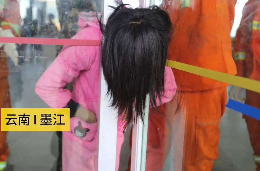 2016年12月31日,云南墨江县特殊学校饭堂,一名13岁女童与同学打闹,头部被食堂玻璃门卡住动弹不得。消防员到场后锯开门轴,才把女童救出。
