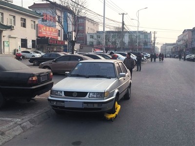 “买个蛋糕的工夫,汽车轮胎就被锁住了,不交钱不让走。”田女士反映,前些日子去燕丹村村委会附近的蛋糕店买点心时,把车辆停在店前的太海路上。10多分钟买完点心出来后,她发现汽车的前轮被锁了,车窗上贴的纸条上写着:因您的车辆占用交通通道或消防通道,现已被锁,请联系工作人员开锁。落款为“燕丹村委会保安大队”。