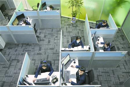 铁路12306客服人员不停地接听旅客来电 /晨报记者 殷立勤